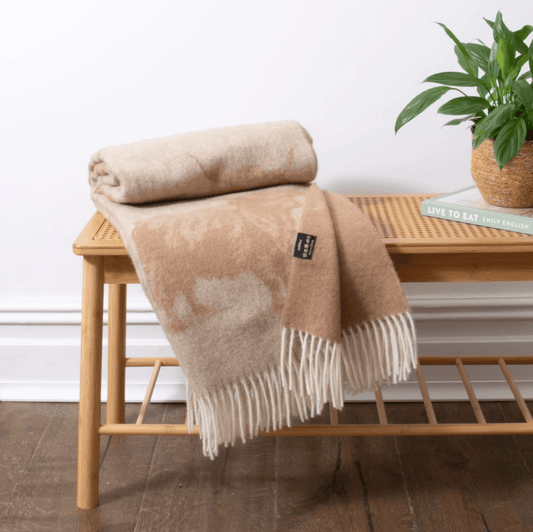 Highland Cow Beige Wool Blanket
