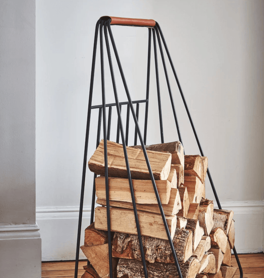 Contemporary Leather Handle Log Trolley