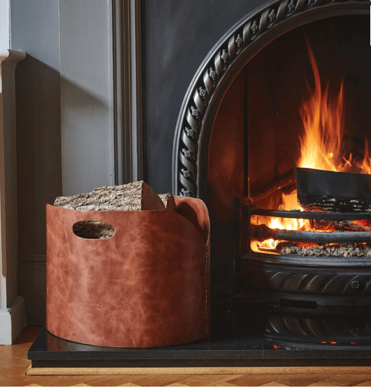 Leather Handle Round Log Holder