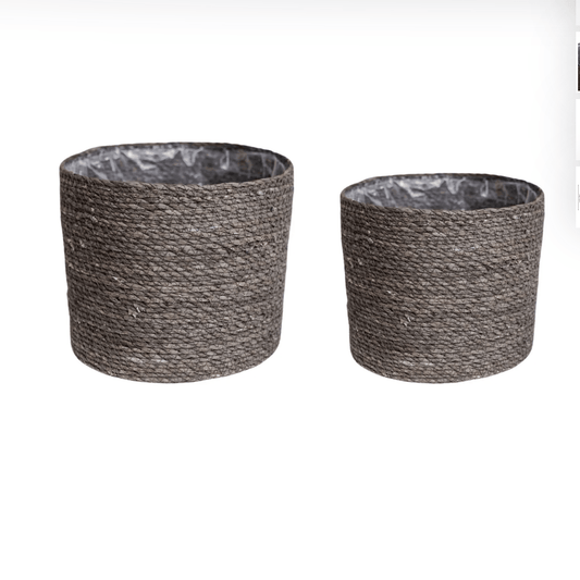 Water Hyacinth Woven Log Basket with Handles Set of 2