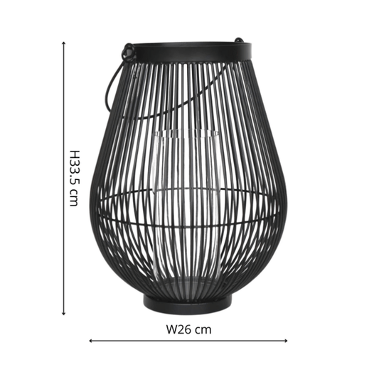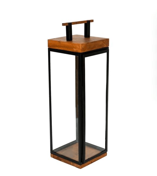 Tall Lantern in Acacia Wood and Black by Ivyline H58 x W20cm