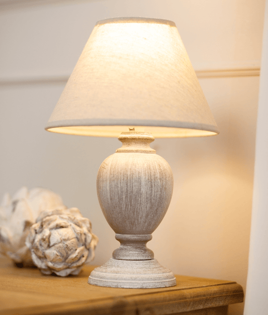 Incia Grey-Washed Wooden Table Lamp with Linen Shade