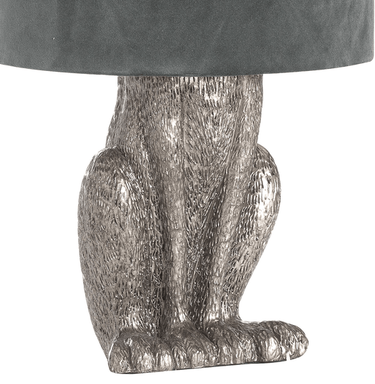 Silver Hare Table Lamp with Grey Velvet Shade