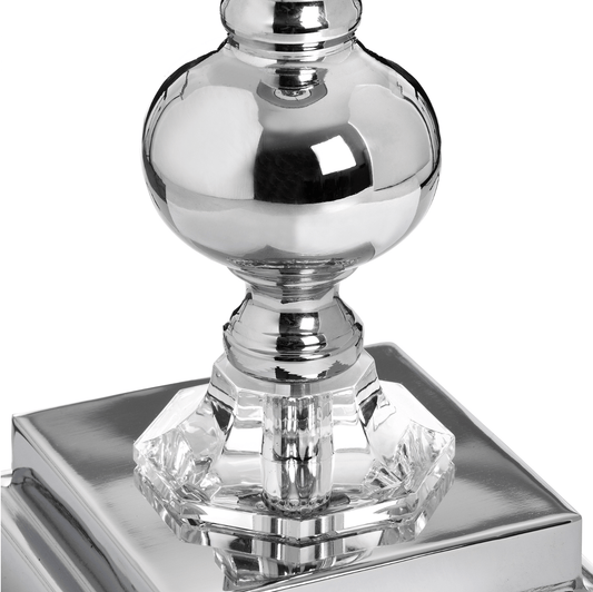 Chrome & Glass Table Lamp with Grey Herringbone Shade