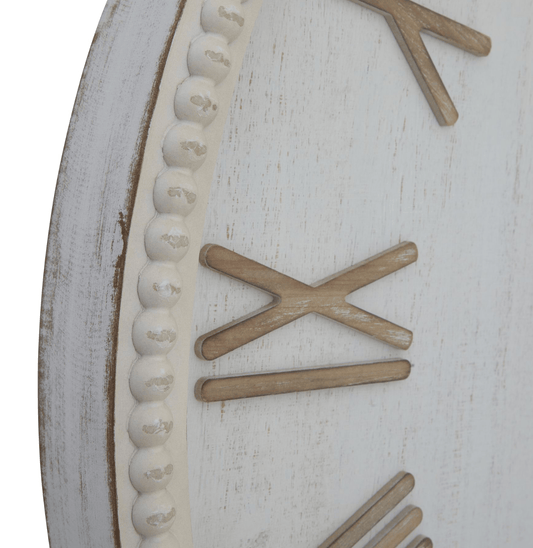 Large Rustic White Wall Clock With Beaded Frame